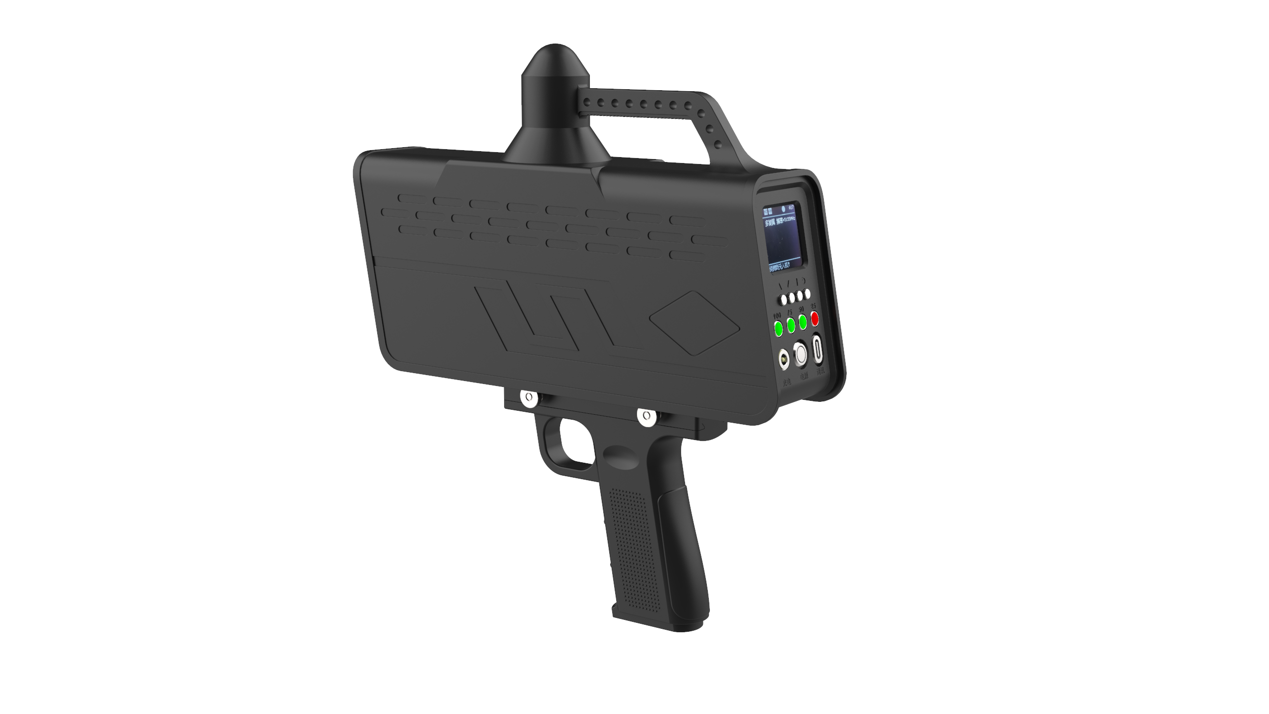 便携式侦测仪通过对无人机信号的深度频谱分析及特征识别,可单机实现探测范围内无人机的实时监测。产品外形设计紧凑轻薄、易于携带,搭载高性能电池,续航持久,可应用于不同场景下的低空安防作业。可协同无人机反制枪使用。